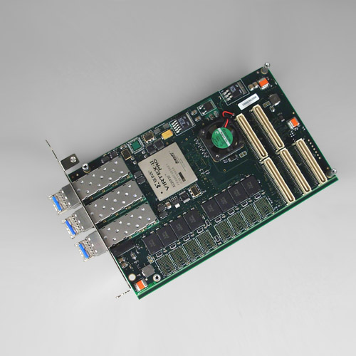 The 3x3G has four additional RocketIO transceivers that connect to an internal 40-pin connector. Two quad-frequency oscillators allow eight different clock speecs.