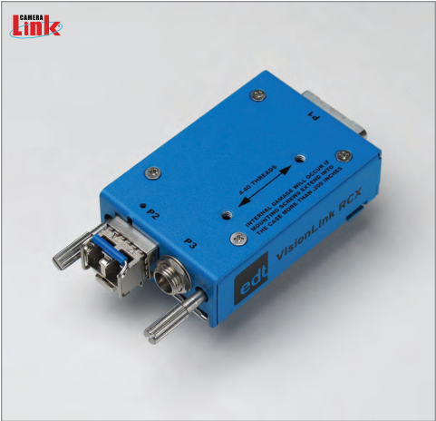 The VisionLink RCX replaces standard base mode Camera Link cabling with fiberoptic, extending the Camera Link range far beyond the limits of electrical cabling. Similar in size to a standard Camera Link connector, the VisionLink RCX modules support data rates up to 255 MB/s and pixel clock rates of 20-85 MHz.